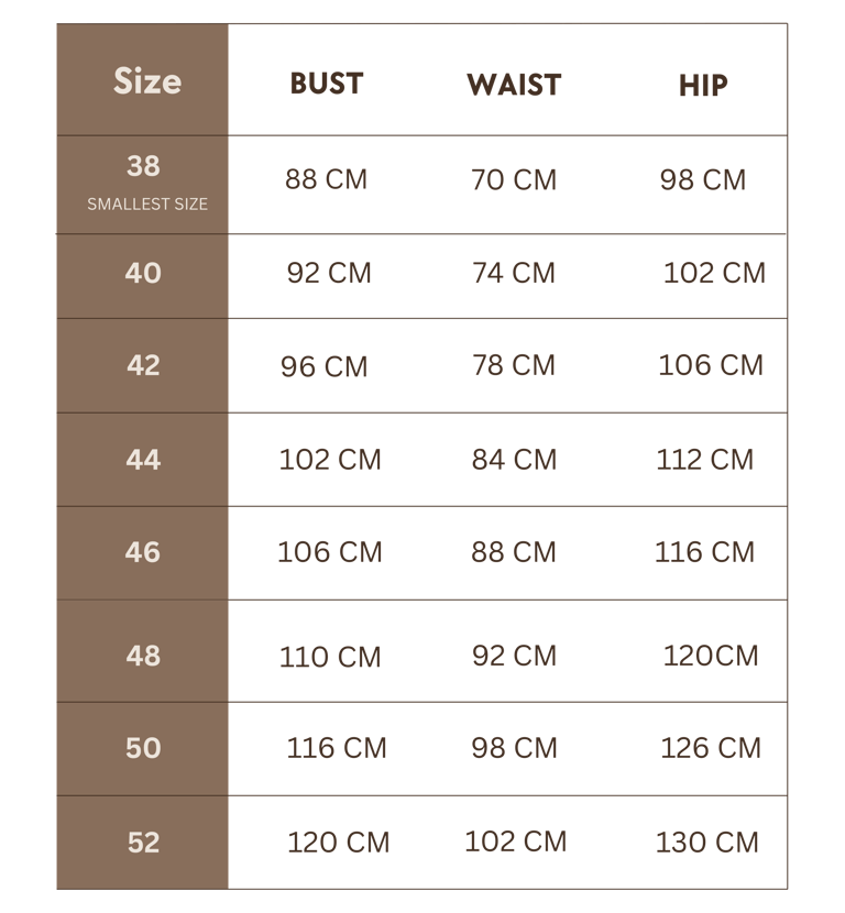 Standard sizing can vary slightly between categories and individual pieces. To eliminate any guesswork, we provide exact measurements for each item, helping bridge the gap between online shopping and in-store fitting. Every piece is carefully measured individually, laid flat, and measured from the outside.